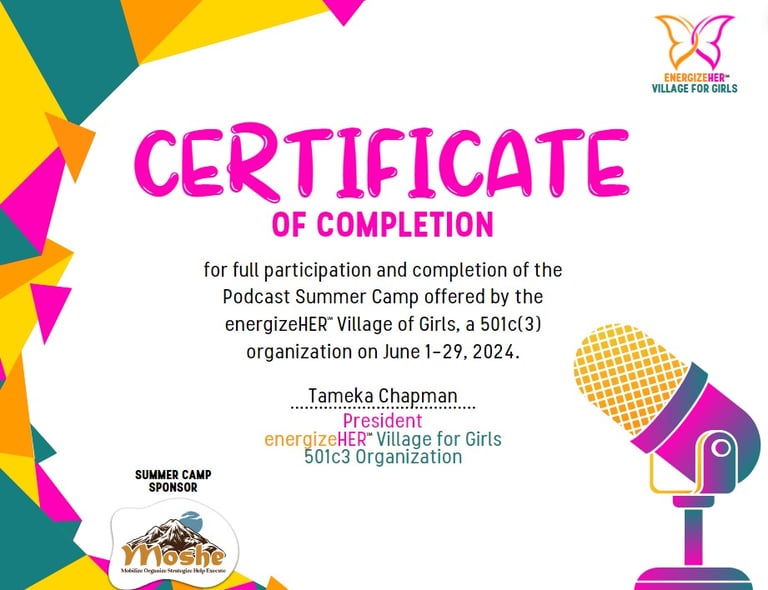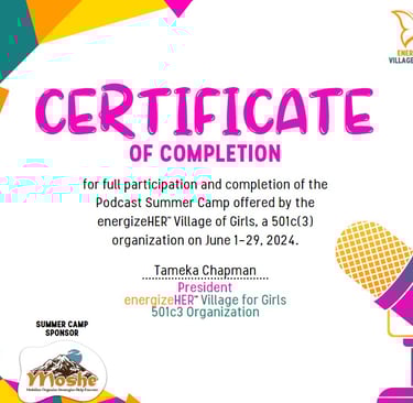 "We are incredibly proud of these young podcasters. Their creativity, enthusiasm, and hard work have been inspiring. We can't wait to see what they achieve in the future," said Tameka Chapman, Founder of energizeHER™ Village for Girls.